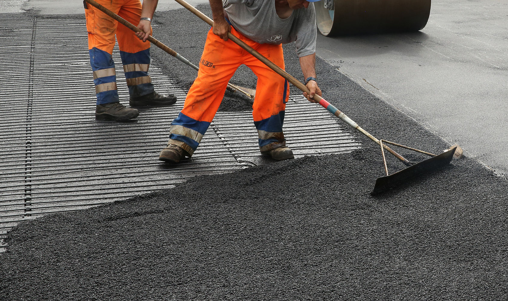 Freiflächenheizungen im Walz-Asphalt-Belag verhindern Schnee und Eis auf Einfahrtsrampen, Rettungszufahrten, Eingangsbereichen, etc.