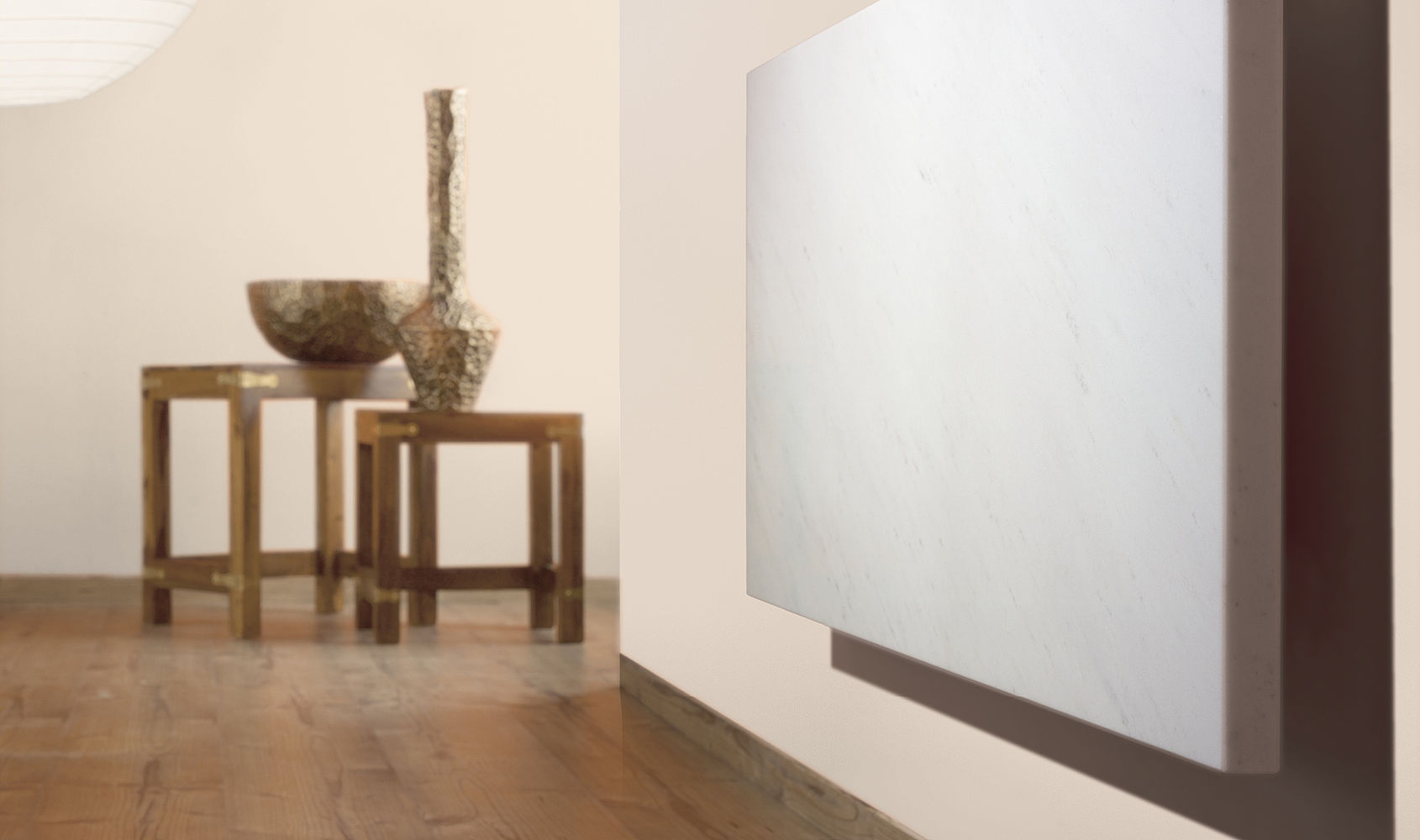 Die Regelung der Marmorheizkörper erfolgt über externe (Funk-)Raumthermostaten.