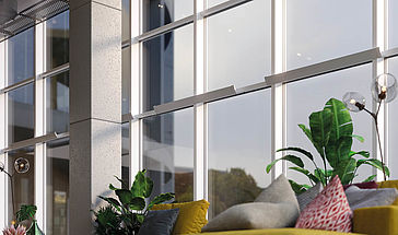 GLIESE eignet sich für die Beheizung von Bereichen mit eingeschränkten Platzverhältnissen und bietet bei einer Montage über Fenstern wirksamen Schutz vor kalter Zugluft.
