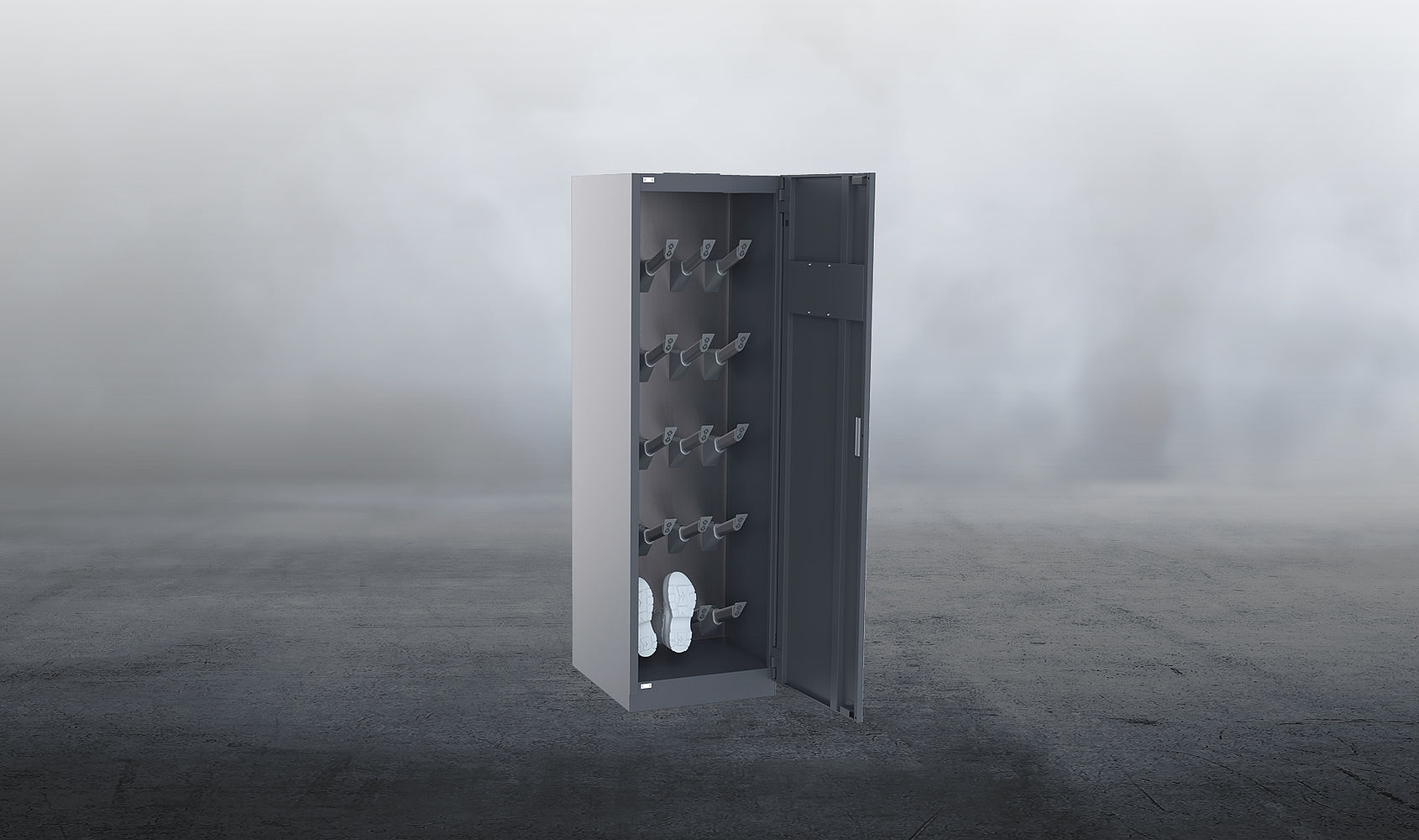 PRIMUS UNI 10 verfügt über 20 Trocknungsarme, welche für 10 Paar Schuhe oder 10 Paar Handschuhe ausgerichtet sind. Der PRIMUS UNI 10 ist optional mit desinfizierender und neutralisierender STEREX-Plasmatechnologie und/oder als Edelstahlausführung erhältlich.